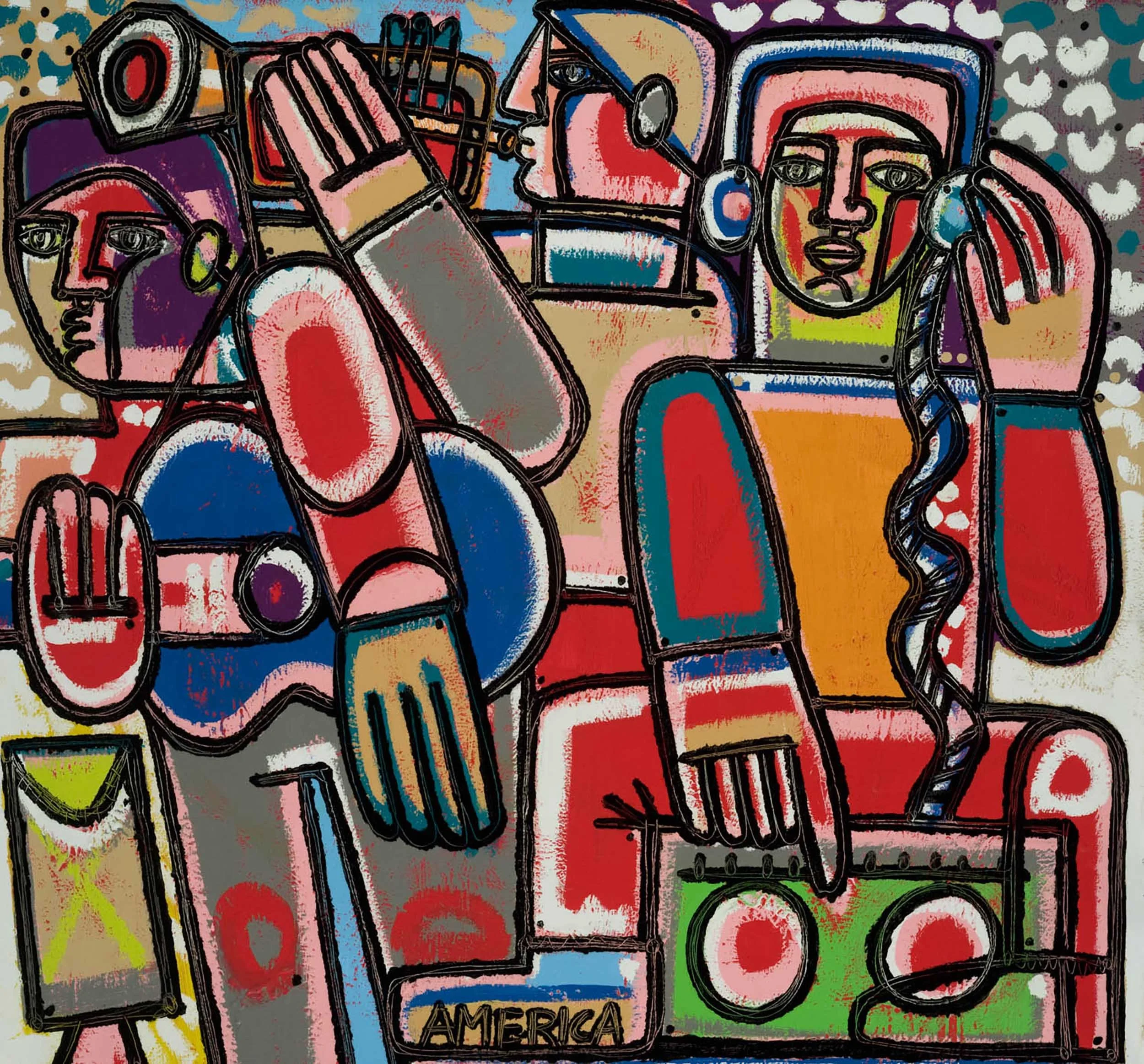 Music & Three Men | Oil and acrylic on canvas | 65” X 69” in.